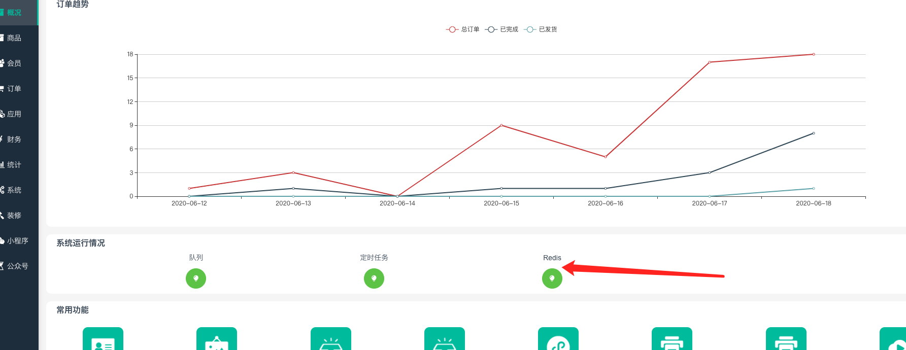概况-redis显示绿色才是正常,相反意味执行失败,处理方法说明请看>>https://bbs.yunzmall.com/forum.php?mod=viewthread&tid=24746